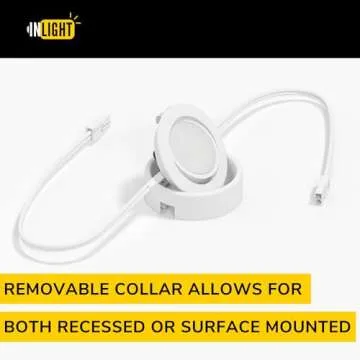 GETINLIGHT 2.75" Wide 4000K Swivel and Dimmable Wired LED Puck Lights Kit, Plug-in or Hardwired Installation, Recessed or Surface Mounted, White Finished, Set of 3, IN-0107-3-40