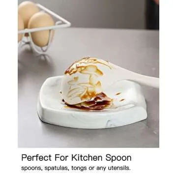 Getstar Ceramic Spoon Rest for Stove Top, Large Spoon Holder for Kitchen Counter, Dishwasher Safe, Marble Decor Finish