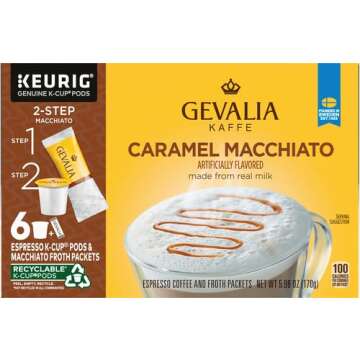 Gevalia Frothy 2-Step Caramel Macchiato Espresso K-Cup Coffee Pods & Froth Packets Kit, 6 ct Box