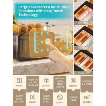 Gevi Toaster 4 Slice,Led Display Touchscreen Bagel Toaster with Dual Control Panels of Bagel/Reheat/Defrost/Cancel/Toasting One Slice/Longer Function,6 Shade Setting