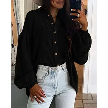 Gevomir Long Sleeve Shirts for Women Corduroy Button Down Shirt Shacket Jacket Boyfriend Oversized Blouses Tops Black