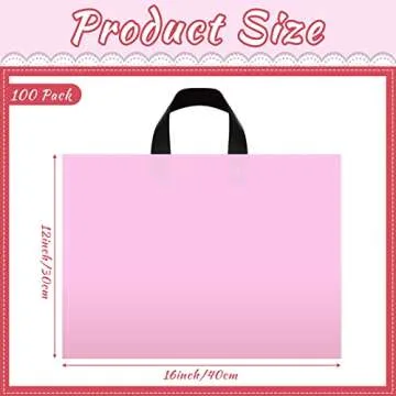 Show moreIntroducing the Geyee 100 Pack 16 x 12 Inch Pink Plastic Shopping Bags, a must-have for any boutique or small business looking to add a touch of elegance to their packaging. These exquisite frosted pink bags, complemented by sleek black handles, not only serve as a practical solution for shopping but also elevate your brand’s aesthetic. Made from high-quality, durable materials, these bags are designed to handle various goods while keeping your items safe and stylish.