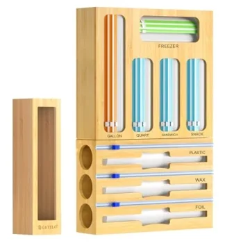 Transform your kitchen experience with the GEYILO 9 IN 1 Foil and Plastic Wrap Organizer! This innovative product is designed to declutter your kitchen drawers while offering a seamless solution for storing and accessing various kitchen wraps. With its robust build, it perfectly accommodates a range of storage bags including gallon, quart, sandwich, and snack sizes. The integrated cutter allows for clean and precise dispensing of foil and plastic wrap, making every cooking session a breeze....