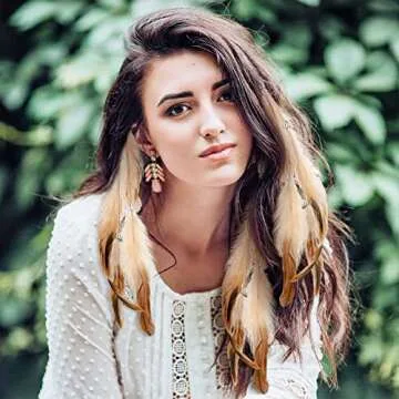Geyoga 12 Pcs Feather Hair Extensions Clip in Hair Feathers for Women Mardi Gras Cosplay Costume Carnival Party Headdress Boho Feather Clip Accessory Gifts(Brown)