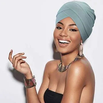 Geyoga 4 Pcs Cotton Turbans for Women Chemo Headwear Cancer Patient Hats Stretchy Turban Headwrap Soft Pleated Sleep Cap(Mint Green, Khaki, White, Light Pink)