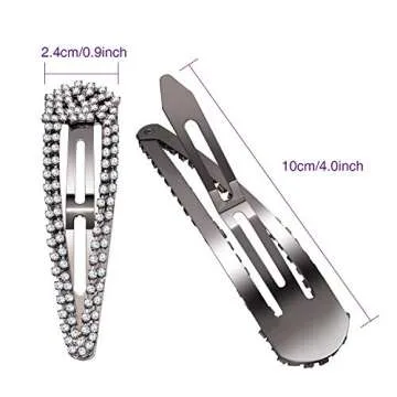 Geyoga 6 Pieces Rhinestone Snap Hair Clips 4 Inch Metal Hair Barrettes Hairpins Crystal for Women Wedding Accessories(Black, Silver, Gold)