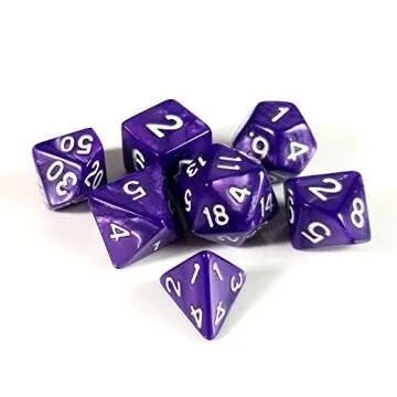 Show moreIntroducing the GFDay Set of 7 Polyhedral Dice, a stunning addition to your role-playing game toolkit! This beautifully crafted die set includes all the essential polyhedral shapes: D4, D6, D8, D10, D12, D20, and D00, designed with players in mind. The purple marbled swirl finish not only pairs perfectly with your favorite RPG themes, but it also enhances visibility and gameplay. Each die features gold numbering, making it easy to read the results at a glance. Whether you're a seasoned gamer or just starting your tabletop journey, this set provides the perfect balance of style and functionality.