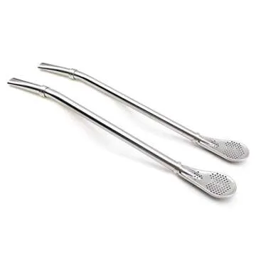 GFDesign Yerba Mate Bombilla Gourd Drinking Filter Straws Stirrer Food-Grade 18/8 Stainless Steel - Set of 2 with 2 Cleaning Brushes - 7.5 Inches Long
