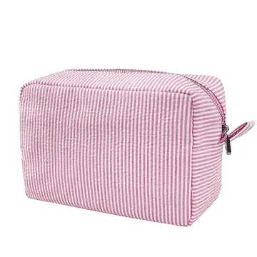 GFU Seersucker Cosmetic Pouch: Stylish Large Makeup Bag for Travel