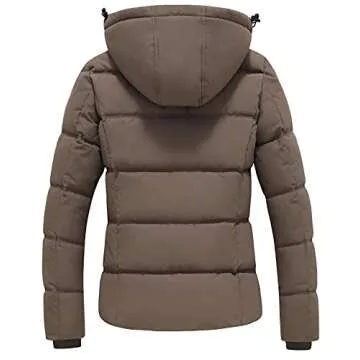 GGleaf Women's Winter Jacket Water Repellent Warm Hooded Thicken Puffer Coats Khaki X-Large
