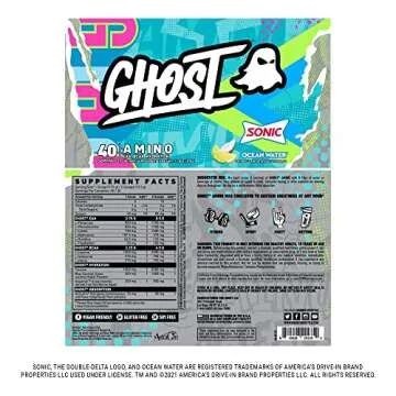 GHOST Amino: Essential Amino Acid Supplement, Sonic Ocean Water - 40 Servings - Intra-Workout Powder for Hydration and Recovery 4.5g BCAA & 5.5g EAA - Soy & Gluten-Free, Vegan