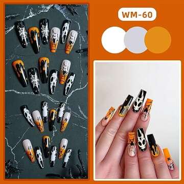 Ghost Halloween Press on Nails Long Square Fake Nails Black Spider Web Heart False Nails Orange Gradient Blood Drop Acrylic Nails Day of the Dead Stick on Nails with Glue on Nails for Women