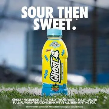 GHOST Hydration Drink, Sour Patch Kids Blue Raspberry - RTD Sports Drinks with Electrolytes for Hydration - Beverage for Athletes - Zero Caffeine & Zero Sugars - 16.9 Fl Oz, 12 Pack