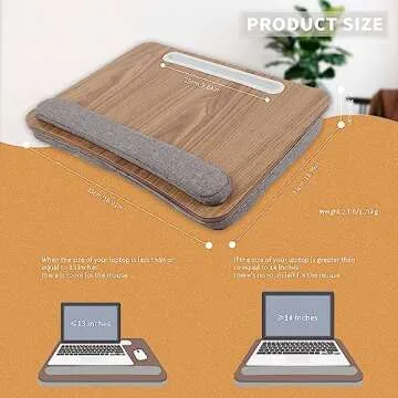 Show moreMeet the GhostFire Lap Desk Laptop Table – your ultimate work-from-home companion that brings comfort, convenience, and versatility right to your lap! This innovative table is not just any ordinary lap desk; it's designed with multiple functionalities that cater to your everyday needs. Whether you’re working remotely, curled up reading a book, or enjoying a movie on your laptop, this table is a game changer. Constructed with a beautiful light brown wood grain platform and a chic gray fabric cover, this lap desk not only looks sophisticated but also provides a cozy, natural feel that complements any home decor.