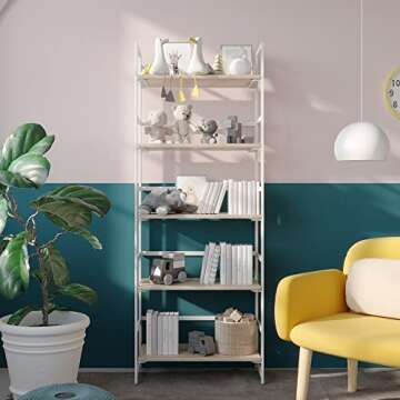 GHQME No-Assembly Folding Bookshelf Storage Shelves 5 Tiers Vintage Multifunctional Plant Flower Stand Storage Rack Shelves Bookcase for Home Office (White)