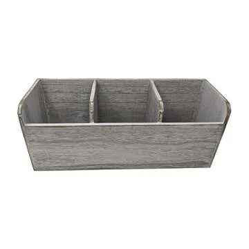 Show moreDiscover the charm and functionality of the Gianna's Home Rustic Farmhouse 3 Compartment Wooden Countertop Kitchen Desk Caddy Utensil Organizer. This beautifully designed caddy combines rustic farmhouse aesthetics with practical organization, making it an essential addition to your kitchen or home office. With its distressed gray/white shabby chic finish, this organizer adds a warm and inviting touch wherever it is placed, be it on your kitchen countertop, desk, dresser, or vanity. Measuring 14 3/4 in. X 6 1/2 in. X 5 in., it's perfectly sized to hold a variety of utensils, serving tools, and office supplies while keeping them easily accessible and stylishly displayed.