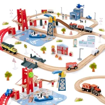 Show moreThe Giant Bean 117 Pcs Busy Port City Train Set is an enchanting wooden train set designed to ignite the imaginations of young engineers aged 3 and up. This expansive set not only features a wide variety of components—including a unique lift bridge and a container ship—but also weaves together the excitement of a bustling port scene with the joy of creative play. Crafted for durability and compatibility with most wooden train brands, this exceptional set offers endless opportunities for adventure that will have children engaged for hours on end.