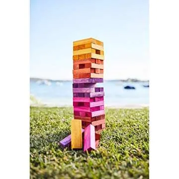 While there are other jumbo tower games available, the Giant Jumbling Tower Sunrise stands out due to its compact storage size, vibrant design, and age-appropriateness for younger children. Unlike competitors that may offer larger blocks making them difficult for little hands to handle, this game provides a perfect fit tailored for precise play, ensuring everyone can join in on the fun without frustration. Plus, its carefully crafted pieces are designed to resist wear, making it a long-lasting investment.