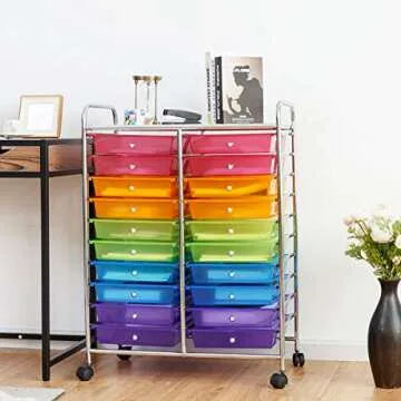 Giantex 20 Drawer Rolling Storage Cart Tools Scrapbook Paper Office School Organizer, Multicolor