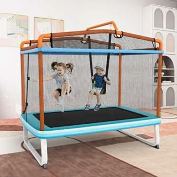 Show more Introducing the ultimate playtime solution for your little ones! This extraordinary 3-in-1 Toddler Trampoline uniquely combines a trampoline, swing, and horizontal bar into a single, versatile design. Perfectly crafted for children aged 3 and above, this innovative toy is specially engineered to provide hours of engaging fun while ensuring safety and durability. With ASTM approval, it is designed with your child's safety in mind.