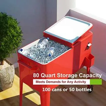 Show moreIntroducing the Giantex 80 Quart Rolling Cooler Cart, the ultimate companion for outdoor gatherings, barbecues, and parties! Designed with a spacious 80 quart storage capacity, this cooler cart effortlessly holds up to 100 cans or 50 bottles, ensuring that your guests are well-hydrated throughout the day. Perfectly blending functionality and style, it features a vibrant red color that enhances any patio decor, making it not just a cooler, but an attractive beverage station as well.