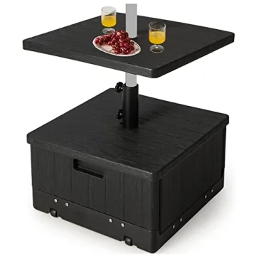 Show more Introducing the Giantex Outdoor Side Table with Umbrella Stand, a multifunctional piece designed to enhance your outdoor experience. This innovative outdoor umbrella base combines a sturdy umbrella holder with a stylish side table, making it the perfect addition to any patio, deck, or garden. The product features a unique box-shaped design complete with a lid, allowing it to serve as a planter box for your favorite flowers or herbs.
