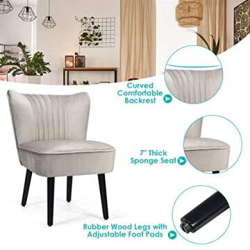 Show moreIf you're searching for the perfect blend of comfort and style, look no further than the Giantex Velvet Accent Chair Set of 2. These modern, mid-century upholstered chairs are designed to elevate any space with their plush velvet fabric and chic design. Constructed with a high-resilience padded seat, they provide not only a cozy nesting feeling but also exceptional back and hip support. With a sleek, minimalist armless design and elegant curved backrest, these chairs seamlessly fit into a variety of decors, making them a versatile addition to your home or office.
