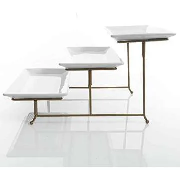 Gibson 3 Tiered Platter Stand with Rectangle Plates, Appetizer Serving Tray, Dessert Display for Tea Party, Brunch Decor, Home Entertaining, Perfect for Cake Pops, Fruit, Cupcakes, Cookies, White/Gold