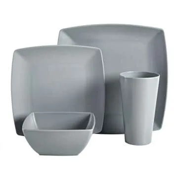 Gibson Home Soho Grayson Square Melamine Plastic Dinnerware Set, Service for Four (16pcs), Grey