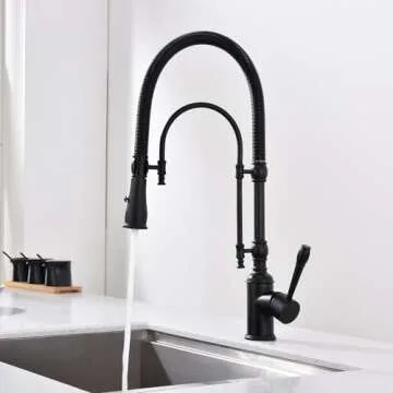 Show moreIntroducing the GICASA Copper Kitchen Faucet—a striking blend of elegance and functionality designed to elevate your kitchen experience. Crafted from solid brass with a luxurious matte black finish, this faucet not only adds sophistication to your space but also promises exceptional durability. This commercial-style faucet features a coiled spring structure, allowing for agile movement and versatility at your sink, making it perfect for chefs and home cooks alike who demand both style and efficiency in their culinary workspace. With a 360-degree swivel, you’ll have full access to your kitchen sink while easily maneuvering between tasks. Enjoy the choice of a dual-function sprayer with a simple switch, providing you with powerful pre-rinse capabilities or a gentle aerated stream for everyday use. Installation is a breeze with included 3/8" H/C water hoses and all necessary mounting hardware—perfect even for the DIY enthusiast!