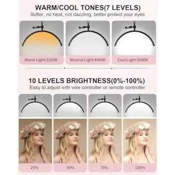 Gicrymil Half Moon Light for Lashes, Lash Light Lamp with Wheels & Phone Holder, Half Moon Lamp for Esthetician, Tattoo Lighting, Nail Tech, 7 Cool/Warm Tones, Adjustable Brightness & Height