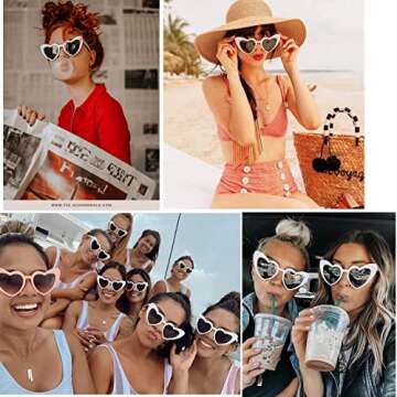 GIFIORE Heart Sunglasses Vintage Retro Oversized Cat Eye Heart Shaped Sun Glasses (White)