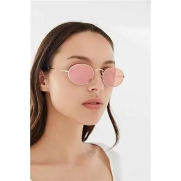 GIFIORE Oval Sunglasses Vintage Retro 90s Sunglasses Trendy Designer Glasses for Women Men (Pink Mirrored Lens)