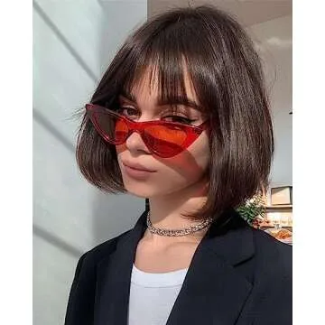 GIFIORE Retro Vintage Narrow Cat Eye Sunglasses for Women Clout Goggles Plastic Frame Glasses (Red)