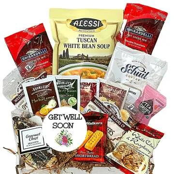 Show moreImagine the comfort of a warm drink on a chilly day or the soothing feeling of a thoughtful gesture when you're unwell. The Get Well Soon Gift Basket is designed specifically for those moments. This gourmet gift box includes a delightful assortment of coffee, soup, and tea, all curated to bring warmth and comfort to the recipient. It's more than just a basket—it's a gesture of love and care, perfect for lifting the spirits of anyone feeling under the weather. Each item in this meticulously crafted package is selected for its quality and ability to bring joy. From rich, aromatic coffee to hearty soup and calming tea, this gift box has something for everyone.