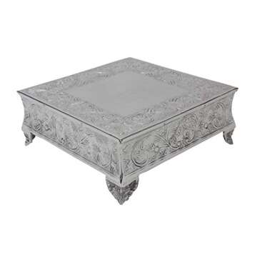 GiftBay 16 inch Square Silver Wedding Cake Stand, Hand Crafted, Embossed, Durable Build