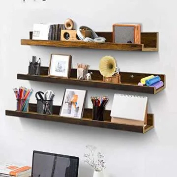 Giftgarden 36 Inch Large Floating Shelves for Wall Set of 3, Rustic Picture Ledge Wall Shelf for Bedroom Kitchen Bathroom Living Room Nursery Display, 3 Different Sizes