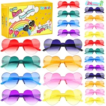 Show moreLet the kids shine with the GIFTINBOX 24 Pack Heart Sunglasses! These vibrant and fashionable heart-shaped rimless sunglasses come in an array of candy colors, making them a delightful addition to any party or event. Each set includes 24 pairs, beautifully individually wrapped to maintain their pristine quality until they reach the little wearers. Perfectly designed for children aged 8 to 12, these glasses offer a fun, stylish way for kids to express their charm and uniqueness. Lightweight and constructed from durable yet comfortable materials, they are crafted to fit snugly on younger faces without slipping off during playful activities.