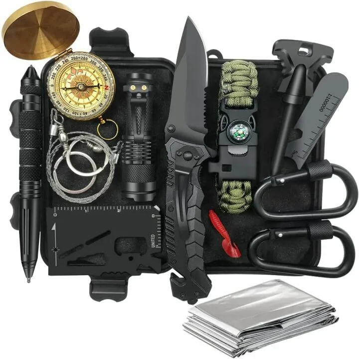 | Included Components | Wire Saw, Flint, Emergency Blanket, Flashlight, Waterproof Box, Compass |