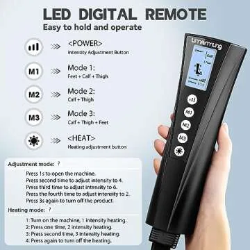 Show moreIntroducing the **UMARMUNG Air Compression Massager**, a revolutionary solution for your tired leg woes that promotes relaxation and recovery after a long day. Perfectly designed for those who spend hours sitting or standing, this premium leg massager utilizes air-powered compression technology to deliver professional-grade relief right at home. Say goodbye to muscle fatigue, cramping, and swelling—this innovative device not only enhances circulation but also transforms your leg care routine into a therapeutic experience. Whether you are recovering from long hours at your desk, engaging in fitness activities, or simply need to unwind, this massager offers tailored settings that cater specifically to your needs.