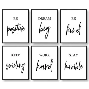 Show more Introducing the GIFTSFARM Inspirational Wall Art – a stylish collection of six unique pieces that radiate positivity and motivation! Each piece is designed to uplift your spirits and inspire you to maintain a positive mindset through the daily chaos of life. With intricate handwriting designs paired with powerful motivational quotes, this art print set is perfect for any space where you desire a touch of empowerment. Crafted to seamlessly blend into your home's elegance, these artworks can enhance the decor of your living room, bedroom, kitchen, gym, bathroom, and even office.