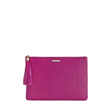 Show moreIntroducing the GiGi New York Handcrafted Women's Leather Uber Embossed Python Clutch in a stunning Peony hue! This exquisite clutch is more than just a statement accessory; it’s a perfect blend of luxury and functionality. Expertly crafted from premium quality full grain embossed python leather, it boasts a beautifully textured exterior that radiates sophistication and elegance. Its oversized design, measuring an ample 13 1/4" W x 9 1/4" H, provides ample space for all your essentials, making it a perfect companion for both day outings and glamorous evening events. With its convenient top zipper closure, you can secure your belongings while maintaining an effortless chic look.