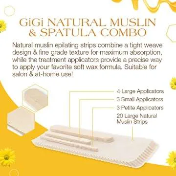 GiGi Waxing Strips for Hair Waxing/Hair Removal, Natural Muslin 20 Strips, and Wax Applicator 10 pcs, Combo