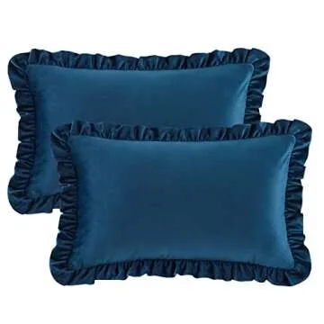 Transform your living space with the exquisite GIGIZAZA Dark Blue 12x20 Lumbar Pillow Covers. Crafted from high-quality velvet fabric, these decorative throw pillow covers bring a touch of luxury to any sofa or couch. The elegant dark blue colorway is perfectly complemented by ruffles made from the same premium fabric, ensuring a plush and sophisticated look that stands out in any home decor setting. Measuring at 12 x 20 inches (30 x 50 cm), these cushion covers are designed to be both soft...