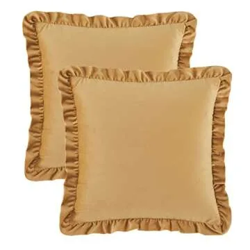 Show moreTransform your living space with the exquisite **GIGIZAZA Pack of 2 Mustard Yellow Throw Pillow Covers**. Crafted from premium velvet fabric, these pillow covers aren't just ordinary cushion covers—they're a statement of luxury and a touch of elegance. The vibrant mustard yellow hue adds a splash of color to any room, making it vibrant and inviting. Each cover boasts beautiful ruffles on all four sides, providing a sophisticated and decorative flair that enhances the aesthetic of your home decor. Designed with functionality in mind, these covers are softer and more comfortable compared to traditional fleece options, ensuring that comfort meets style.
