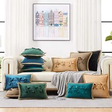 Show more Introducing the exquisite GIGIZAZA Velvet Throw Pillow Covers, a stunning addition to your home décor. Crafted from high-quality soft velvet and cream burlap linen, these decorative pillow covers embody elegance and comfort while seamlessly enhancing your living space. Each pack includes two beautifully designed covers, perfect for your sofa or accent chairs. Their versatile yet stylish bow tie design adds a touch of sophistication, making them the ultimate choice for any room. You’ll appreciate how easy they are to maintain, ensuring that your living spaces remain as pristine as the day you bought them.