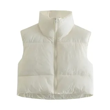 Show more Introducing the Gihuo Women Cropped Puffer Vest, a stylish and practical addition to your outerwear collection! This sleeveless zip-up jacket is designed for the modern woman seeking warmth without sacrificing style. With a lightweight feel, this cozy puffer gilet is perfect for layering during chilly days. Featured in a crisp white color, it blends easily with any outfit, while the cropped length adds a chic twist. Available in sizes XS to XXL, it accommodates a variety of body types, ensuring a flattering fit for everyone. Plus, the design boasts a full zip closure and stand collar, offering additional warmth and protection from the cold while maintaining a fashionable silhouette.
