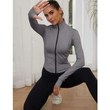 Gihuo Women's Athletic Full Zip Lightweight Workout Jacket with Thumb Holes (Darkgrey, Medium)