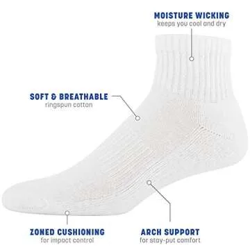 Gildan Men's Active Cotton Ankle Socks, 10-Pairs, White, Shoe Size: 6-12