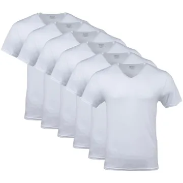 Gildan Men's V-Neck T-Shirts Multipack - 6 White Shirts in Large